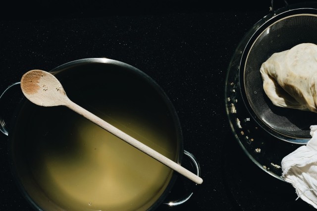 Zeef de vloeistof door een neteldoek en pers het goed uit. Meet de vloeistof, en breng het vocht langzaam aan de kook. Per liter vloeistof 1/2 kg suiker onderroeren.