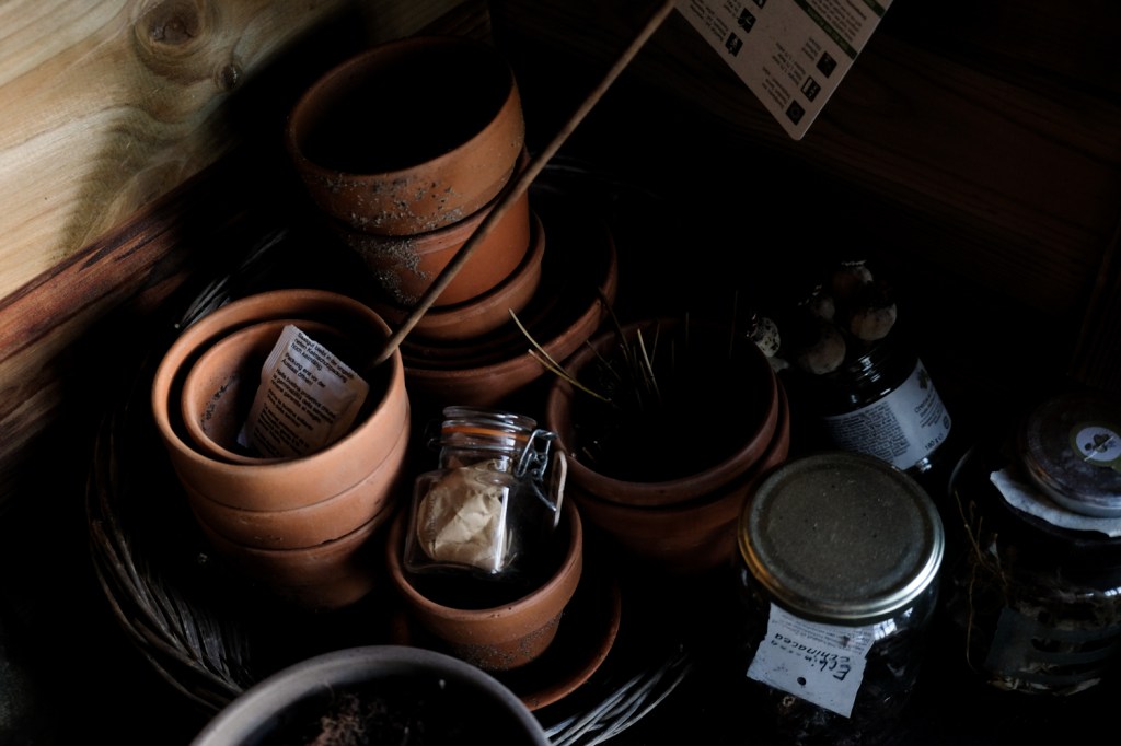 we do not see the things as they are, but we see things as we are · het is mei, ik draag een blouse met lange mouwen én een wollen vest er over en mijn tomatenzaden kiemen niet. Niet één. Vorig jaar ging het fantastisch, ondanks het feit dat ik geen kas heb, maar dit jaar is het koud. Ik probeer niet ontmoedigt te raken, maar de pioenrozen die ik helemaal dood en verloren waande, komen ineens op midden in één van de nieuwe moestuinbakken en overal schieten distels uit de grond. Het gras zit te vol met klaver en paardenbloemen en ik vrees dat het veelbelovende zaad van de papaver somniferum ook niet opkomt.